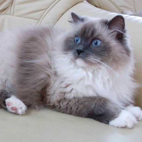 Het blauwe kleurpatroon bij de Ragdoll is eigenlijk een warme, grijze tint. Blue is een verdunning van seal.